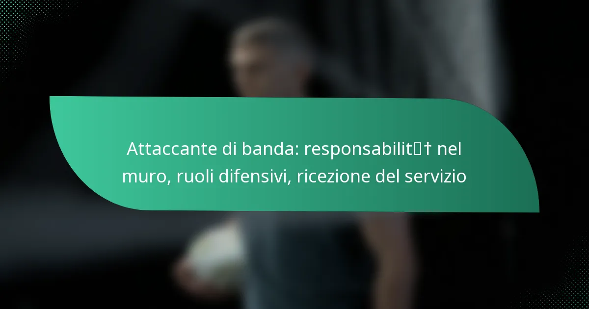 Gli attaccanti di banda sono fondamentali per il successo di una squadra di pallavolo, assumendo responsabilità chiave nel blocco, nella difesa e nella ricezione del servizio. Devono posizionarsi efficacemente e sincronizzare i loro salti per ostacolare gli attacchi avversari, supportando anche i giocatori della seconda linea e comunicando strategie. Dominando le tecniche di ricezione del servizio, gli attaccanti di banda migliorano la capacità della loro squadra di rispondere alle giocate offensive e mantenere una forte presenza difensiva.
