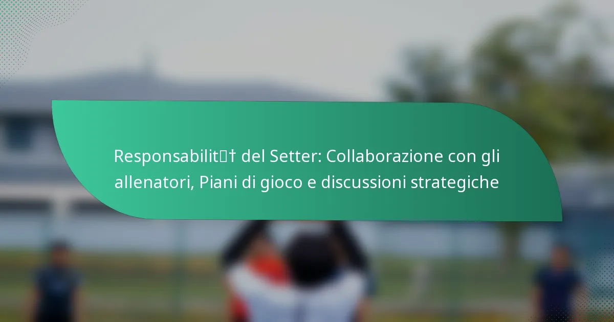 I palleggiatori svolgono un ruolo cruciale nel successo di una squadra di volley collaborando strettamente con gli allenatori. Questa partnership implica comunicazione efficace, discussioni strategiche e integrazione dei feedback per allineare i piani di gioco e migliorare le prestazioni.